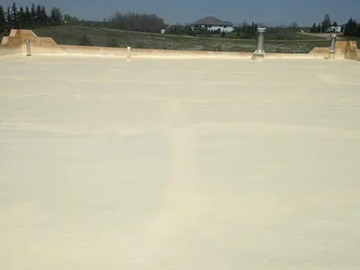 Because spray foam conforms to irregular surfaces, penetrations, and transitions, it eliminates many of the failure points commonly found in traditional commercial roofing systems.